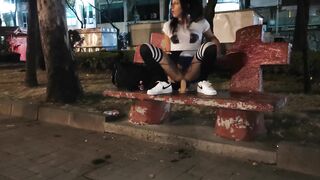 Sissy, rag, femboy riding her dildo in public viewers masturbate in front of her