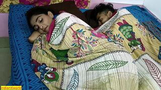 He was really tired but sexy wife needs his dick! Her pussy going wet for fucking!! She calls her secret lover and she start fucking beside her husband in same bed! But anytime her husband may awake!