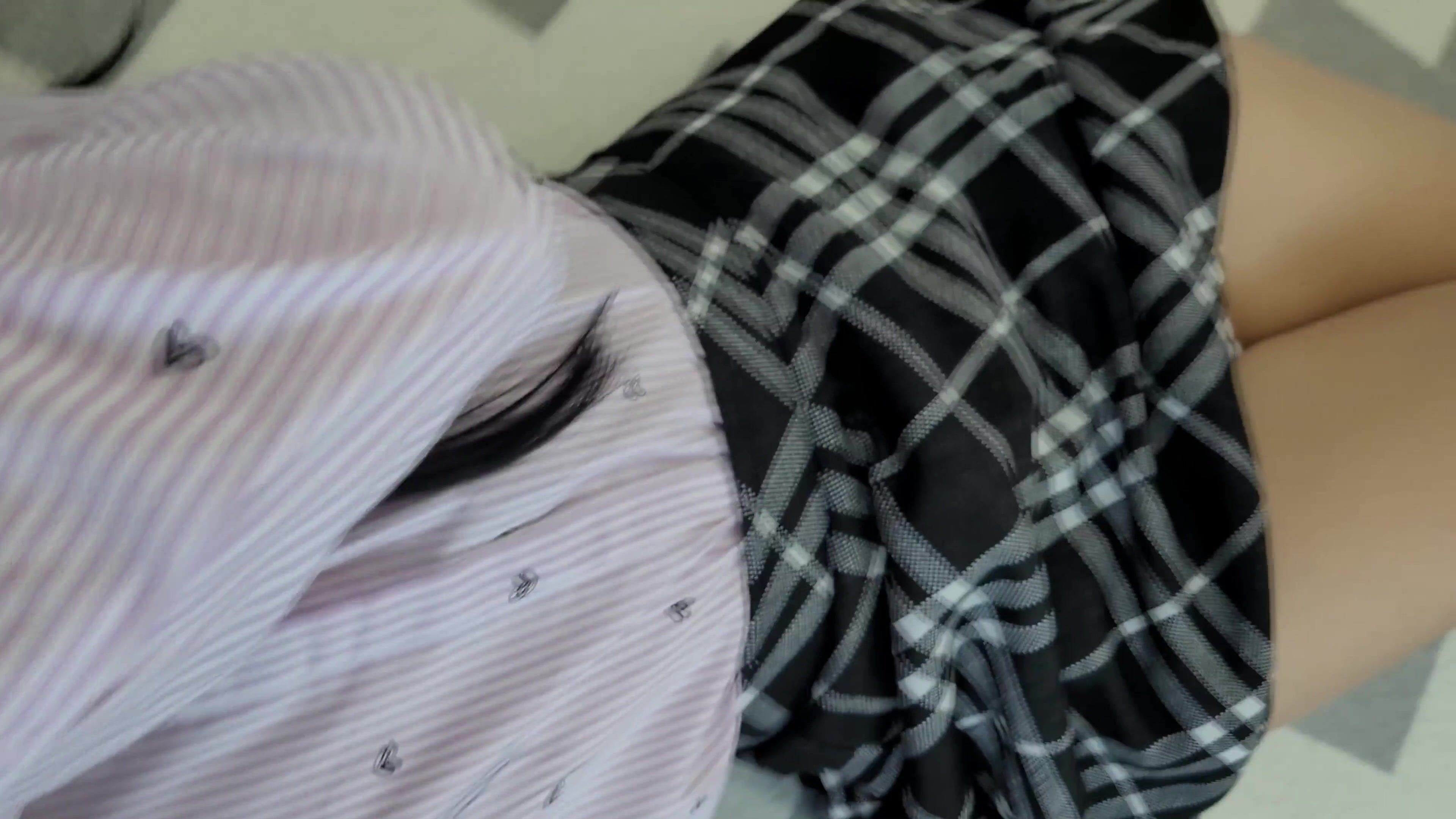 Schoolgirl's tight pussy filled with cum. Oh those upskirt panties...