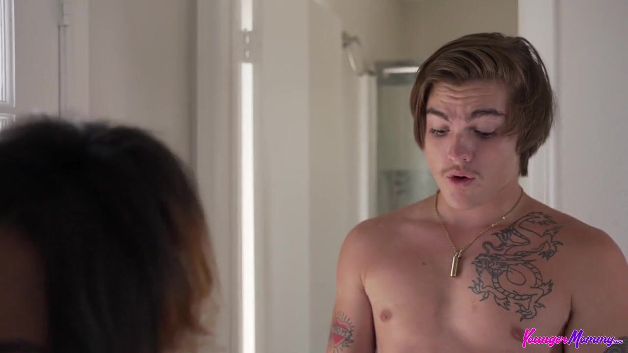 Lacey London and her stepson Tyler Cruise have been dancing around their mutual attraction for far too long. He thinks Lacey is too young to be married to his dad, especially since he's super into her himself. Lacey tells Tyler that she's free use for him, but he doesn't act on it until later. Lacey is cleaning the bathroom and Tyler wants to take a shower. Recalling the free use statement, Tyler pops Lacey's titties out and gives them a squeeze. When Lacey doesn't say anything, Tyler is emboldened to take things further. Dropping to his knees, Tyler lifts Lacey's miniskirt and squeezes her ass. Then he leans in to tongue fuck that juicy pussy.When Lacey is still clearly willing, Tyler drops the towel and slides his cock into his stepmommy from behind. She's clearly loving it as she puts one knee up on the counter for deeper penetration. Then she lays Tyler down on the ground to go for a ride on that fuck stick in reverse cowgirl, followed up by cowgirl. On her knees, Lacey sucks Tyler's cock until he gives her a mouthful of cum that's dribbles down to cover her titties.