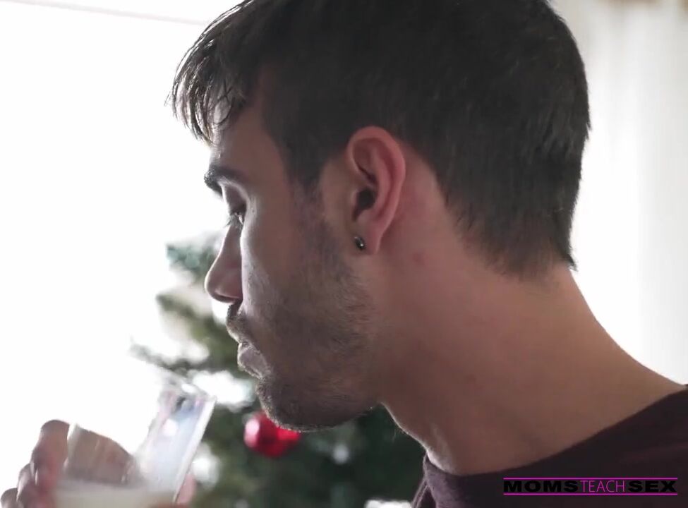 Wearing aprons over their sexy tops that really show off their titties as the spaghetti straps fall from their shoulders, Bunny Madison bakes cookies for Santa with the help of her house guest Molly Little. The cookies are just out of the oven when Nade Nasty, Bunny's stepson, wanders into the kitchen. He does see the cookies, but he also notices those enticing titties and hard nipples peeking out. Nade tries to tell the girls their boobs are out, but they keep interrupting him and telling him that he should go to bed early.Later, Nade wakes up in the middle of the night and sneaks out to munch on the cookies and milk that were meant for Santa. Bunny and Molly catch him and let him know he shouldn't drink the milk because it's special. Nade asks if the milk came from their boobies, then asks if he can have some. The two girls agree to let Nade suck their nipples, which just makes them ultra horny. Molly tells Bunny she won't tell anyone if they're all naughty, so they take their party to the couch.While Molly is peeling off her jammies, Nade dives deep into Bunny's cooch. Molly can't help but masturbate as she watches, but she wants a turn of her own! She gets one when Nade sits up so Molly can sink down and ride the D in cowgirl as Bunny spanks her. The girls work together to blow Nade and suck his balls for another round of fun. Then Molly goes for it in reverse cowgirl as Bunny lets her stepson's tongue make her moan. Nade fucks Bunny as she lays on her back one last time, then pulls out to cum all over Bunny's bare twat just as his dad and Molly's mom come home.