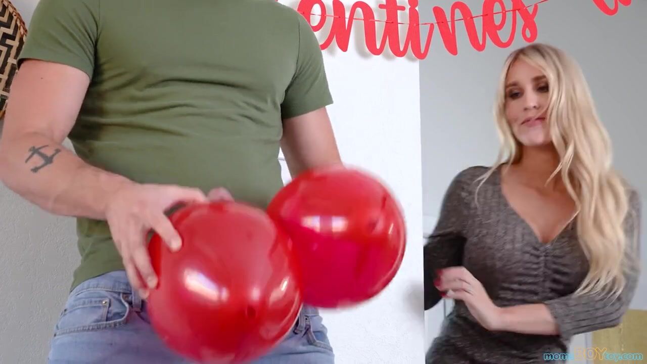 Sarah Taylor is throwing a Valentine's Day party when her stepson Nathan Bronson joins her on the couch. With touches and body positioning, Sarah makes it clear that Nathan can have anything from her that she wants. Nathan is clearly uncomfortable, but he also wants his stepmom as badly as she wants him.Later, Sarah is putting up her decorations when Nathan asks if she needs help. She tells Nathan she's usually really good at blowing, which creates an awkward situation. It gets worse when Sarah holds the balloons like big boobies. Embarrassed, Sarah hands the balloons to Nathan and ducks into the kitchen. Nathan can't help himself; he starts rubbing the balloons on his dick. Sarah can hear it, so she takes a deep breath and pushes the balloons aside so she can stroke and suck the D instead. She promises not to tell if Nathan will be her boy toy.Now that they've come to an understanding, there's nothing stopping Sarah from living out her fantasies of blowing Nathan's cock and then leading him to the couch so he can eat her out. On her knees, she takes her stepson in doggy. When Nathan takes a seat, Sarah climbs on top to ride him in reverse cowgirl and then in cowgirl while her tits jiggle at Nathan's eye level. On her back, Sarah gets Nathan to pound her pussy until he's about to blow. He pulls out just in time for his cum hungry stepmama to enjoy a facial that leaves her well satisfied.