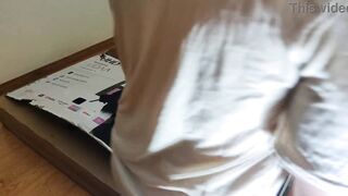 Stepsister receives anal internal cumshot through a hole in a box