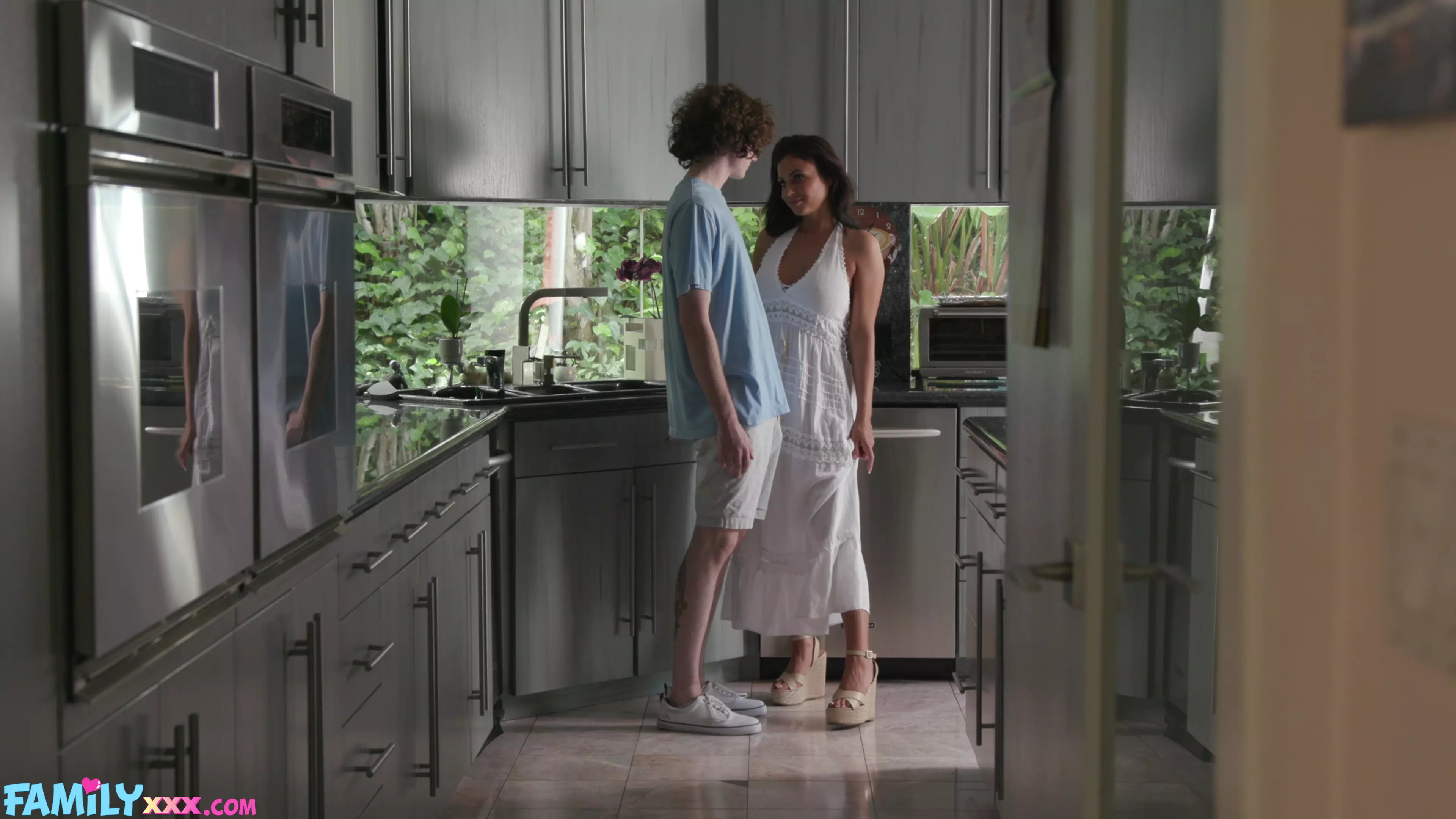New big tit Latina Milf stepmother Daisy Fuentes has had her stepson Jodie's cock on her mind and since the wedding to his father, she has made sure to make them both her toys to fuck. While masturbating and waiting for Jodie to get home, the second he walked in, Daisy bent over the kitchen counter and got the pounding her pussy was craving. Still in need, Daisy hops on his cock on the couch and fucks him hard like a school teacher and squirting her pussy juices to her orgasmic content. Daisy has become a very proud stepmom of Jodie as he is now in control and smacking that ass for a cum frosting on her big tits!